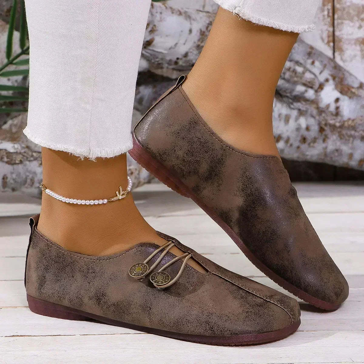 أحذية نسائية من جلد الغزال بأزرار
