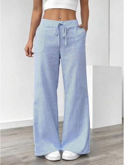 بنطلون نسائي واسع الساق من القطن الناعم