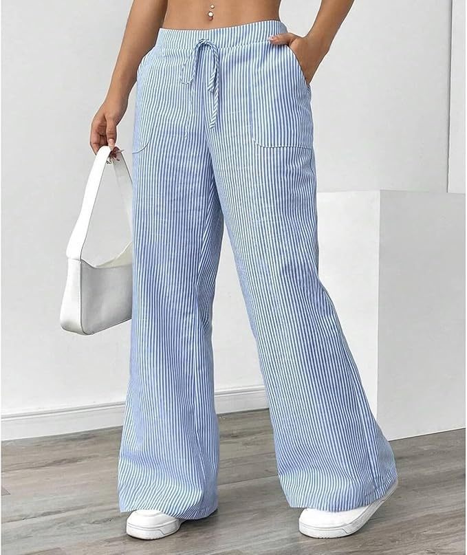 هذا البنطال المخطط ذو الأرجل الواسعة مصنوع من مزيج من القطن الناعم مثل الزبدة الذي يشبه تي شيرت المفضل لديك ولكنه يتنفس مثل الكتان.