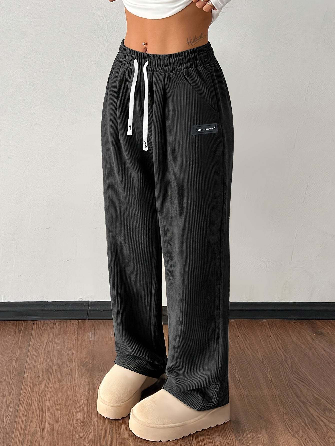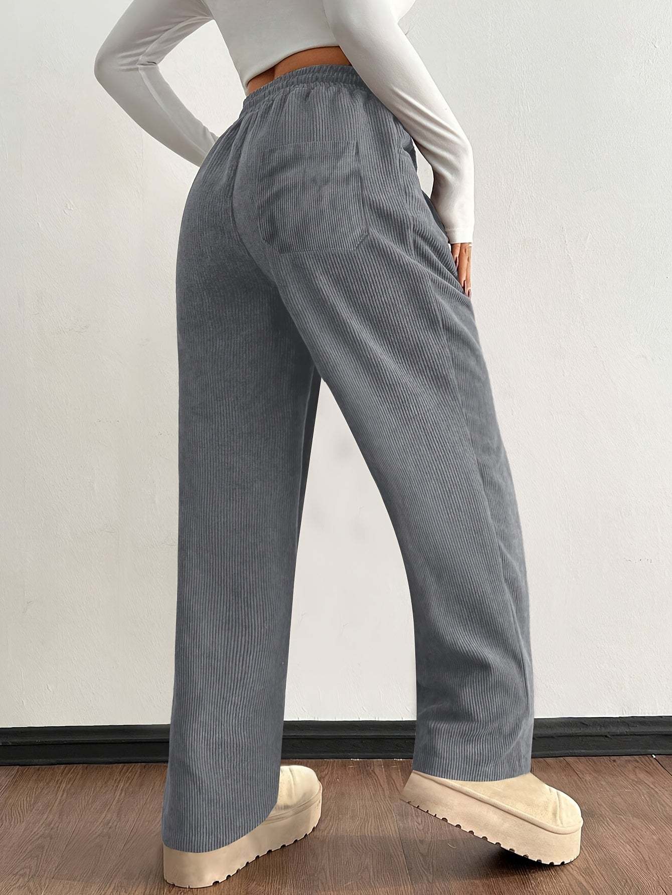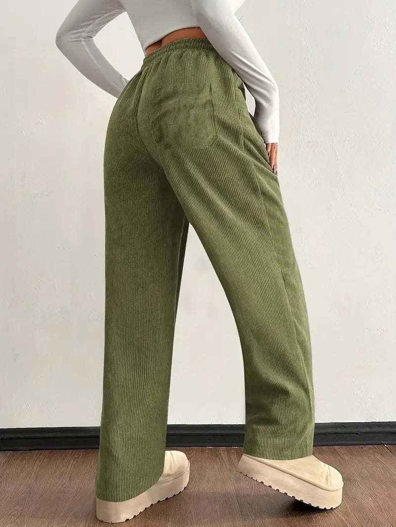 مصنوع من قماش مخملي ناعم ومجعد، يجمع هذا البنطال ذو الأرجل الواسعة بين الهيكلية والسلاسة.