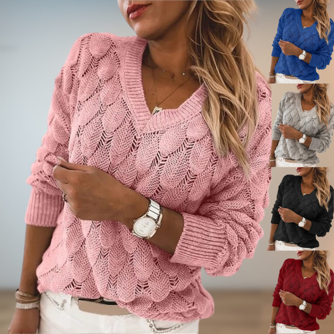 كنزة قطنية أنيقة بياقة على شكل حرف V