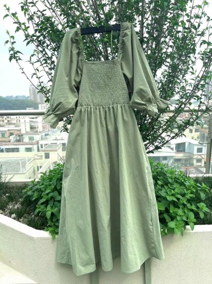 الفستان الفرنسي ذو الأكمام المتموجة على شكل فانوس