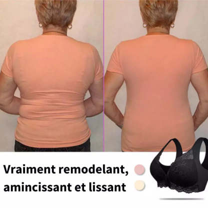 لا يوجد خطاف أو سلك في الظهر، للحصول على شكل بدون خطوط أو نتوءات تحت الملابس. إغلاق بخطافات واسعة وعيون في الأمام، لسهولة الارتداء والإزالة.